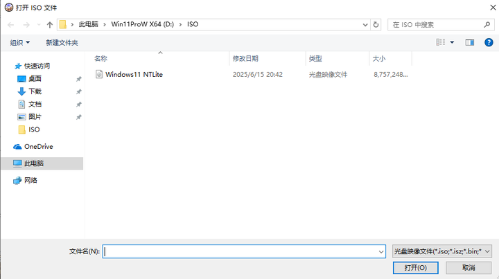 5.在弹出的窗口中根据你的镜像下载的地方打开,例如“D:\ISO\”的文件夹
