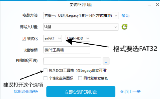 3.根据图片要求指示后点击“立即安装PE到U盘”的按钮。