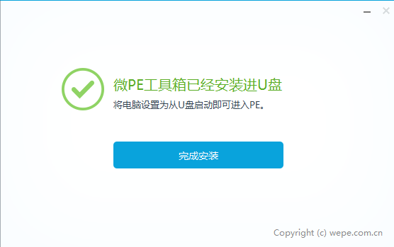 6.完成后点击“完成安装”的按钮,你的PE就制作完成了。