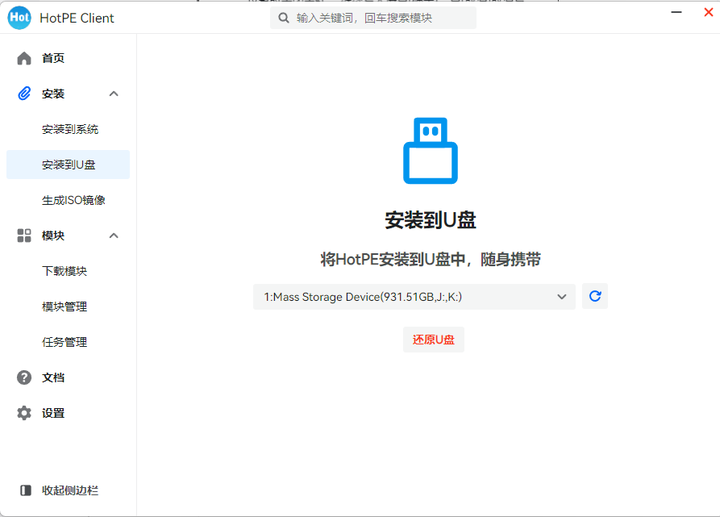 10.制作完成后会在此界面显示“还原U盘”的选项。(可以关闭此程序)