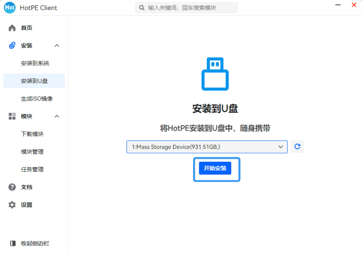 7.选择好你的U盘后,点击“开始安装”的选项。