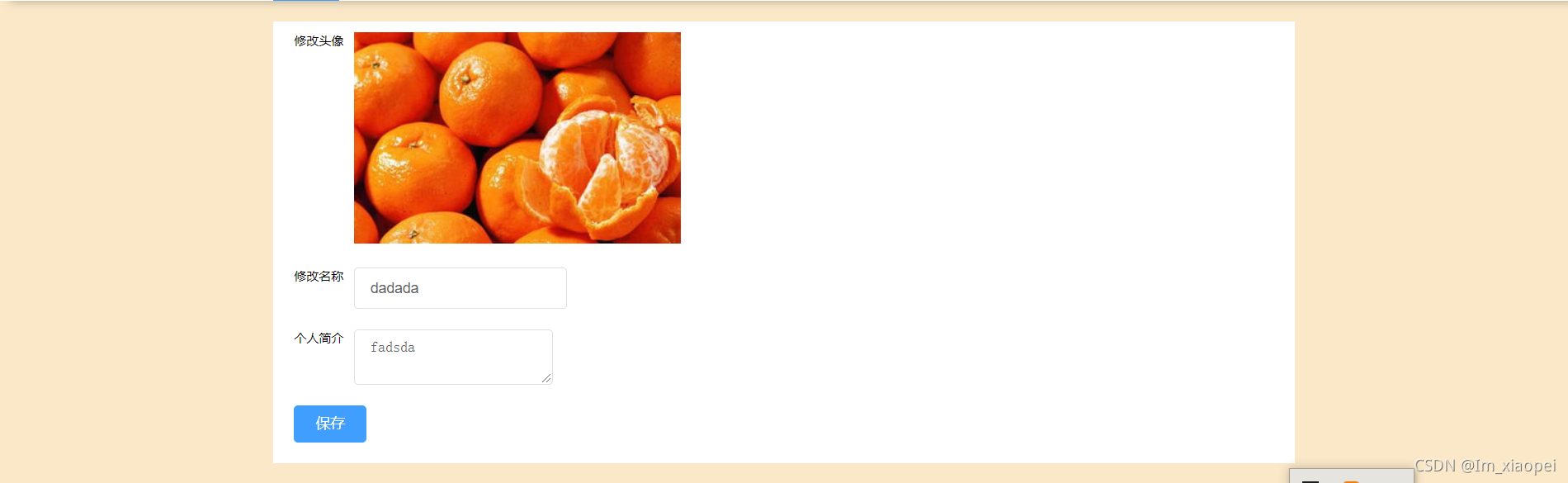 在修改资料组件中,我得先拿到原来的资料,才能去修改,直接改有点怪怪的,就是在实例中定义数据,在通过vuex来获取用户资料的,vuex中的数据是我们已经处理存放好的用户信息数据,上一篇里有,我就不过多阐述,不懂请移步vuePC端项目 -- 美食杰_Im_xiaopei的博客-优快云博客