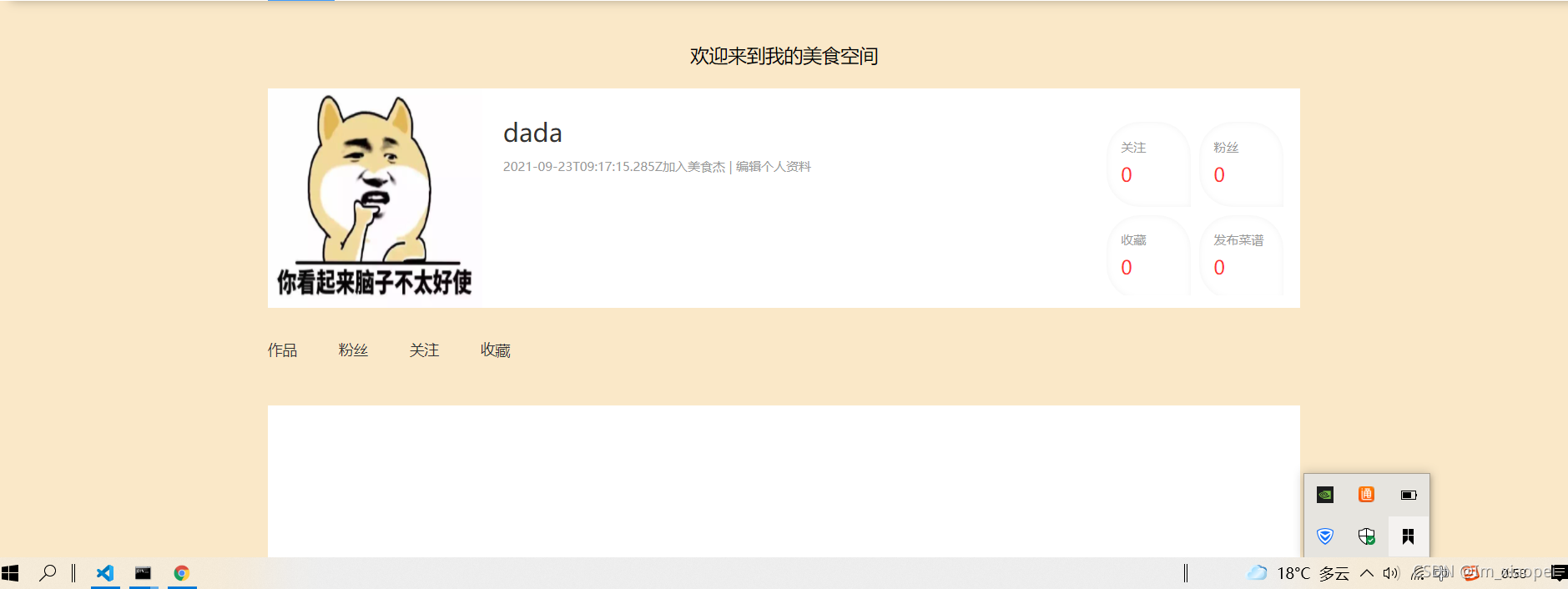 其实大致的布局都是一样的,我只需要在data中定义一个数据来判断我进的是别人还是自己的空间,这里我用的是isMyself,使用v-if来切换显示和隐藏,利用我上面讲的不同来绑定不同的地方。