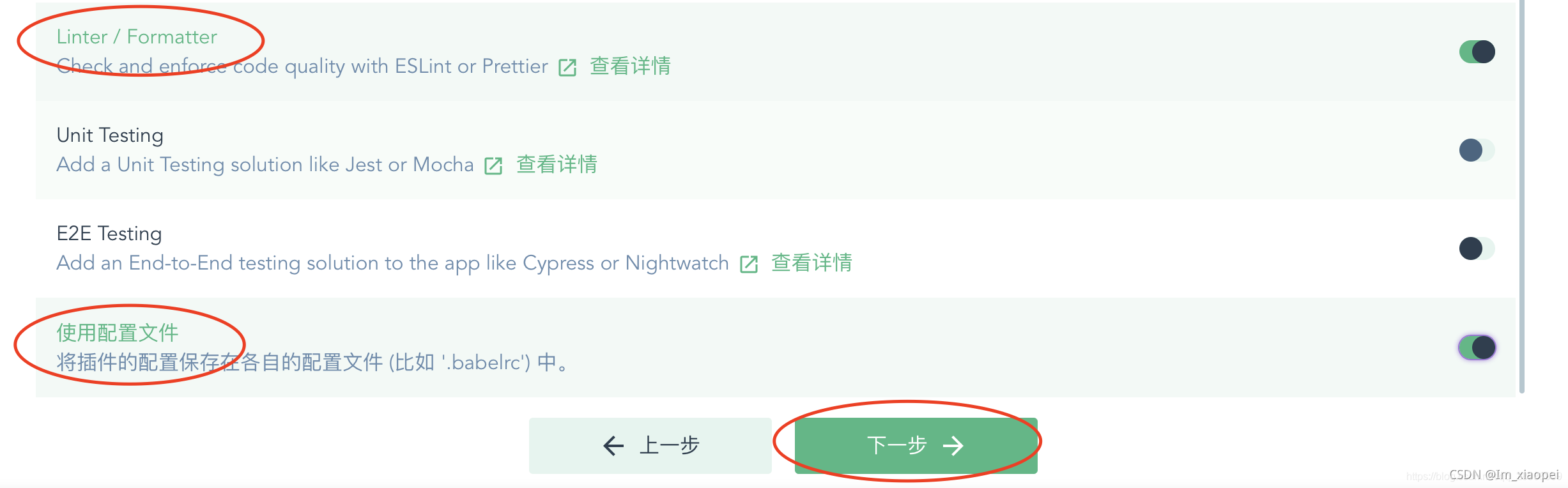 Pick a linter/formatter config选择标准配置ESLint + Standard config,点击创建项目