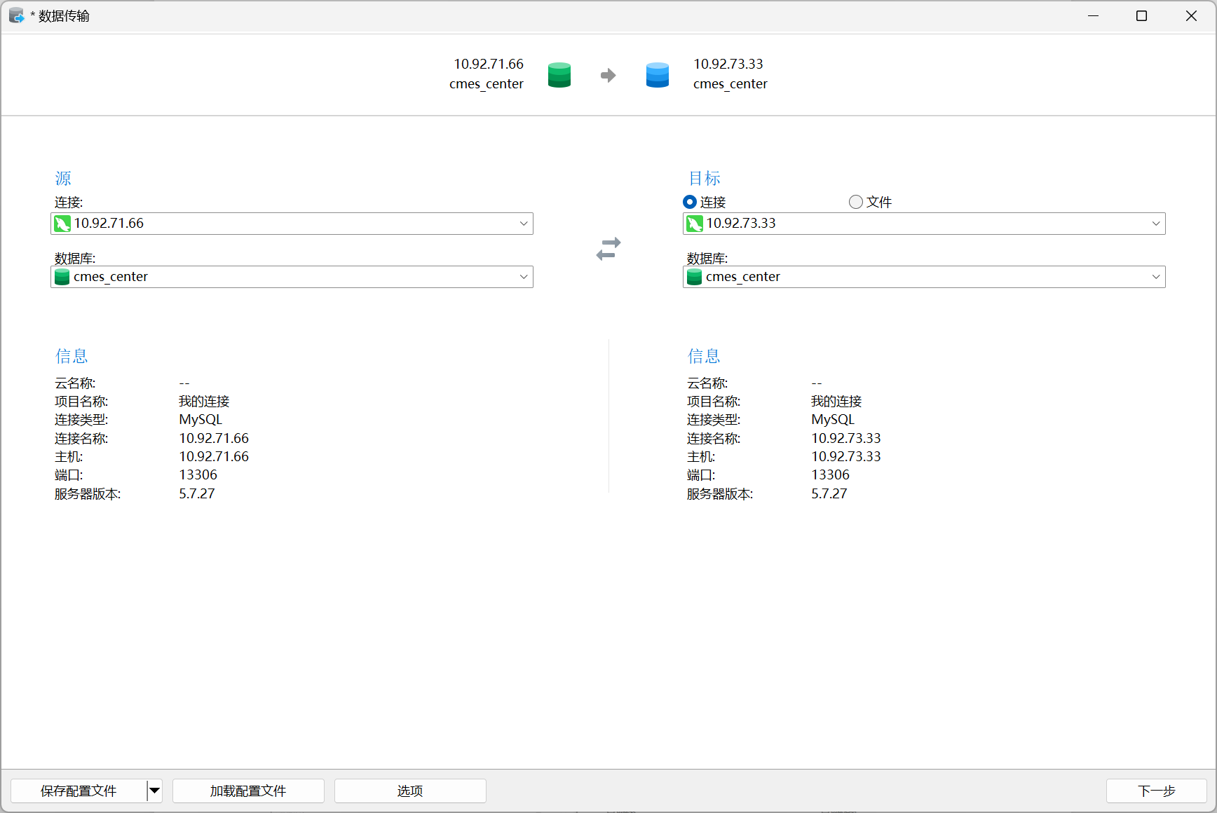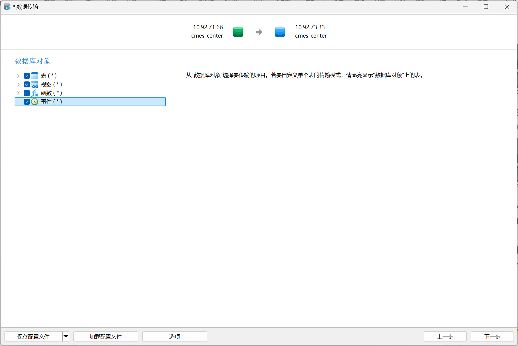 接下来,使用 window 系统下的数据库(如 NAV 数据库)进行迁移,这是一场跨平台的数据大迁徙。首先,利用数据库连接工具,如同搭建一座桥梁,连接虚拟机数据库(需知晓虚拟机 IP 地址)。在工具中输入虚拟机的 IP 地址、数据库端口以及之前设置的用户名和密码,建立稳定的连接通道。然后创建一个名为cmes_center的新数据库,这相当于在目标端为数据准备了一个全新的家园。接着,我们需要找到传输的数据库,这里以另一个数据库为例。连接到来源数据库,打开工具中的 “数据传输” 选项,进入数据迁移的控制中心。在这个环节,根据具体需求勾选相应的数据表、视图等对象,然后点击全选,启动数据传输任务。在传输过程中,工具会实时显示迁移进度,如同数据迁徙的进度条逐渐拉满。等待几分钟,数据如同一群迁徙的候鸟,从原来的数据库环境飞向新的虚拟机数据库家园,完成数据迁徙的壮举。