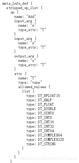 meta_info_def : 它记录了TensorFlow计算图中的元数据以及TensorFlwo程序中所有使用到的运算方法的信息