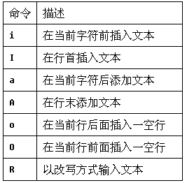 i、a、r——在光标的前、后以及所在处插入字符命令(i=insert、a=append、r=replace)。