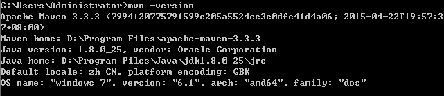 如果有maven 版本信息输出则证明配置成功,否则请查看自己配置路径等是否正确。