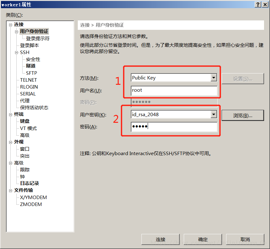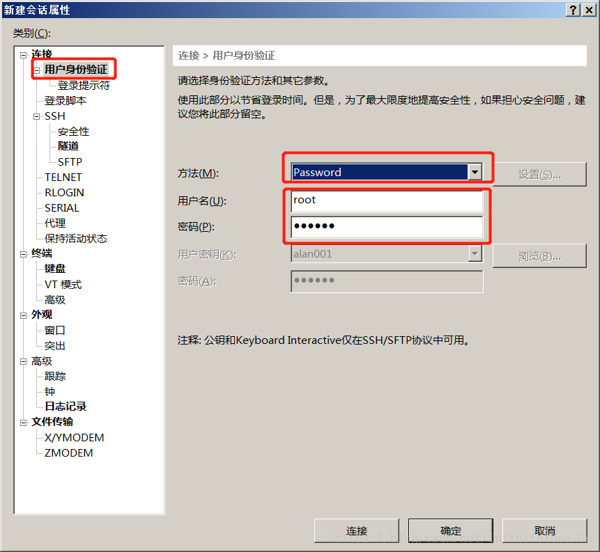 4.5进行xshell的密钥登录,选择用户身份验证选项