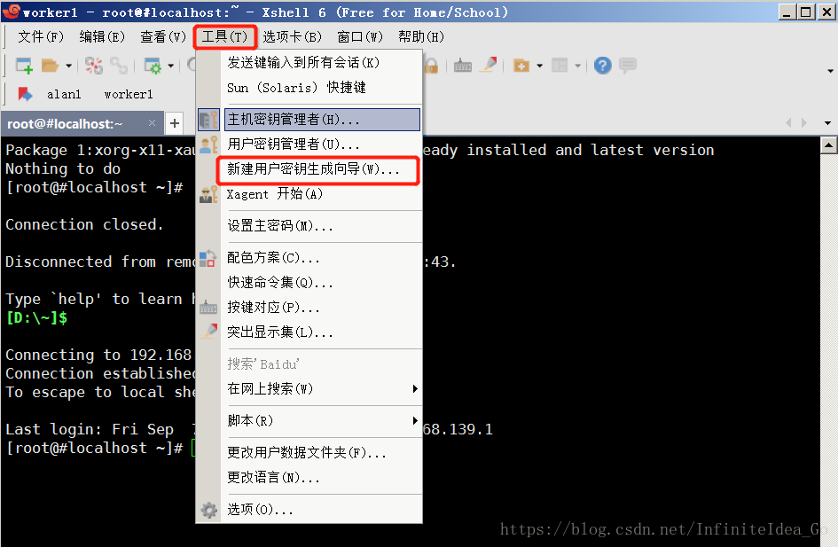 4.1打开xshell软件,点击工具->新建用户密钥生成向导