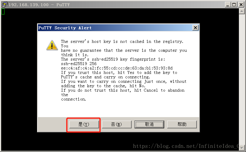 第一次连接到服务器时,都会提示登录安全警告,点击是即可,下次登录就不会出现这个警告了