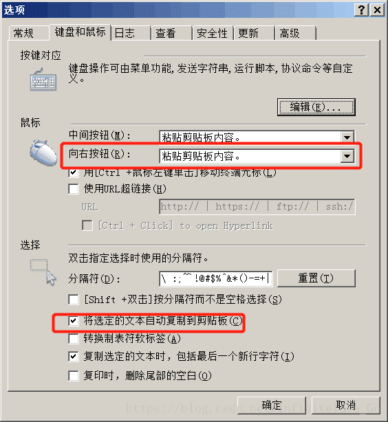 还有一个小操作,就是xshell默认鼠标选中不是复制的,鼠标右键也不是粘贴的,这里可以设置一下即可