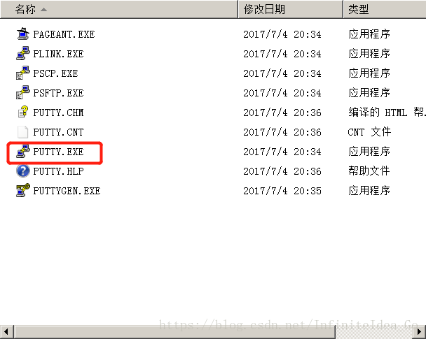 鼠标双击红色框的PUTTY.EXE,即可以启动putty远程登录工具