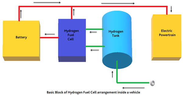 现在汽车装配氢燃料电池非常简单,氢燃料存储在燃料箱中,在燃料箱中产生电力并直接供给电动机。与仅储存电能的锂离子电池驱动的电动汽车不同,氢燃料电池产生的能量同时还为内部电池充电。因此,不需要对蓄电池组件系统再进行单独充电。