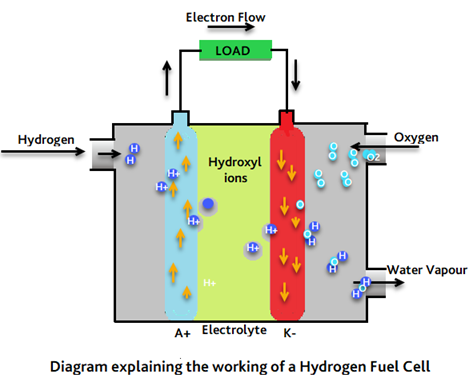氢燃料电池的运作是建立在“反向电解”的原理上的。基本原理就是,氢原子与氧原子在燃料电池内反应产生电能。燃料电池包括阳极、阴极和电解质膜。氢气和氧气在电池中发生了化学反应产生电能,除此之外还产生了一些热量和水蒸气残留物。