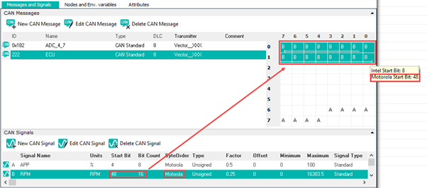 ● Byte Order:信号的字节顺序,摩托罗拉(Big Endian)/英特尔(Little Endian)