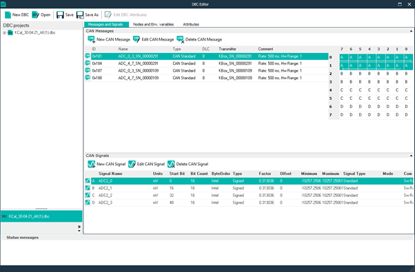 Influx Dialog 软件是一个创建/编辑DBC 的有效工具。