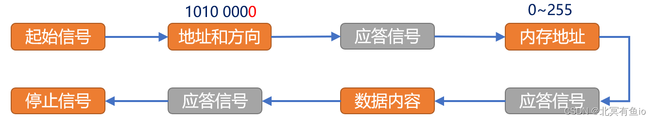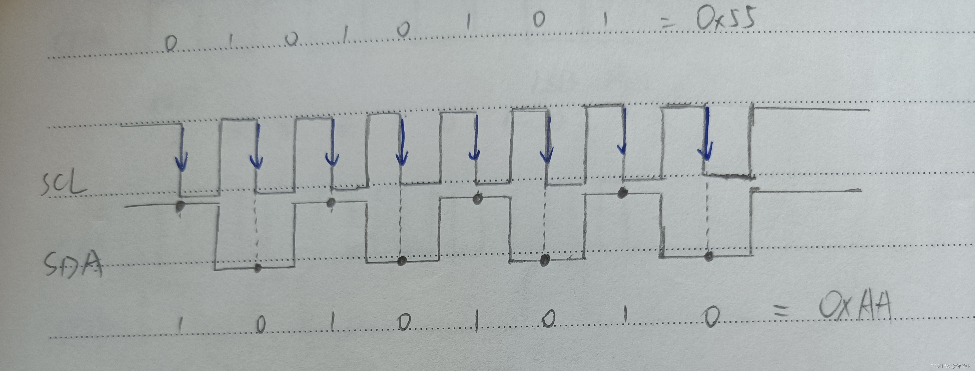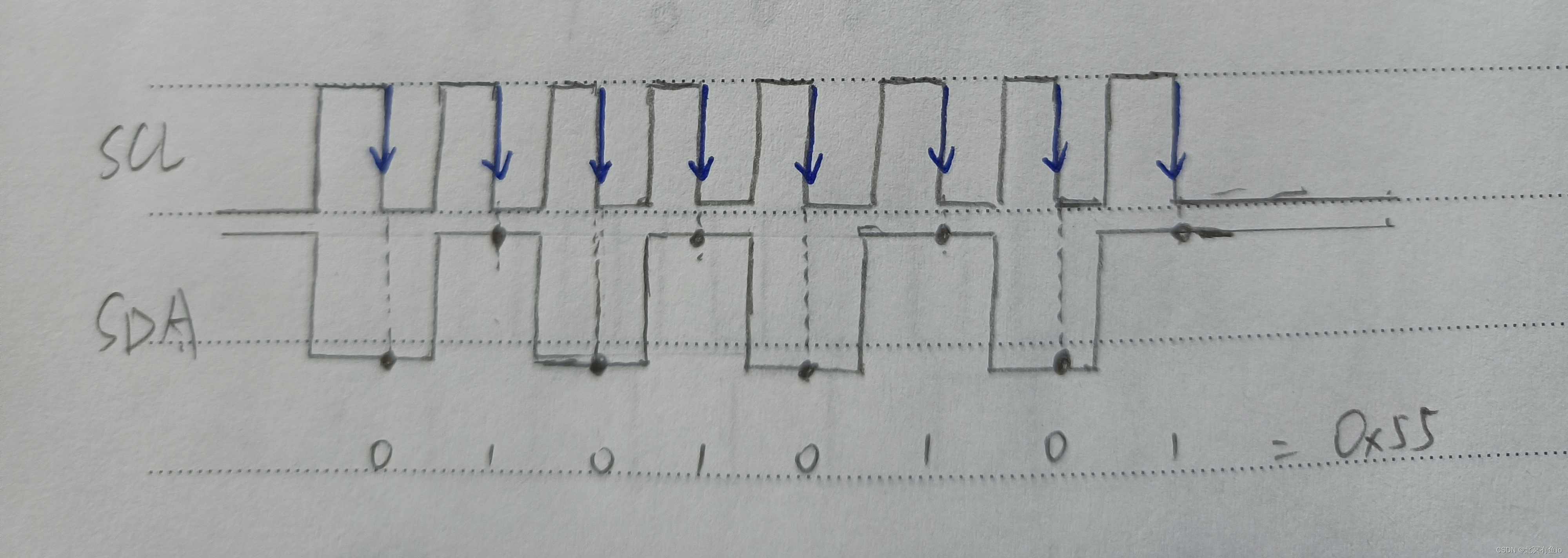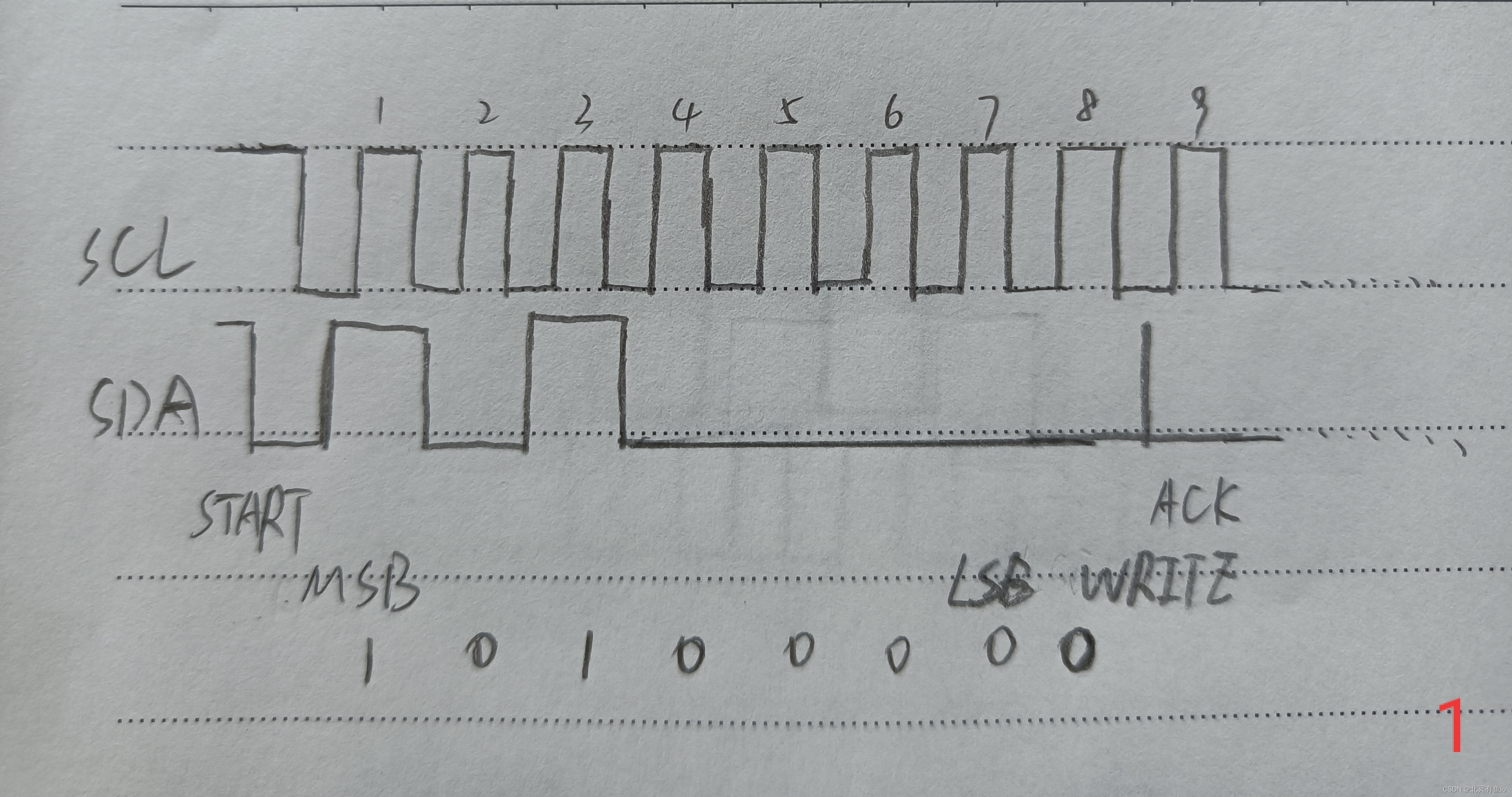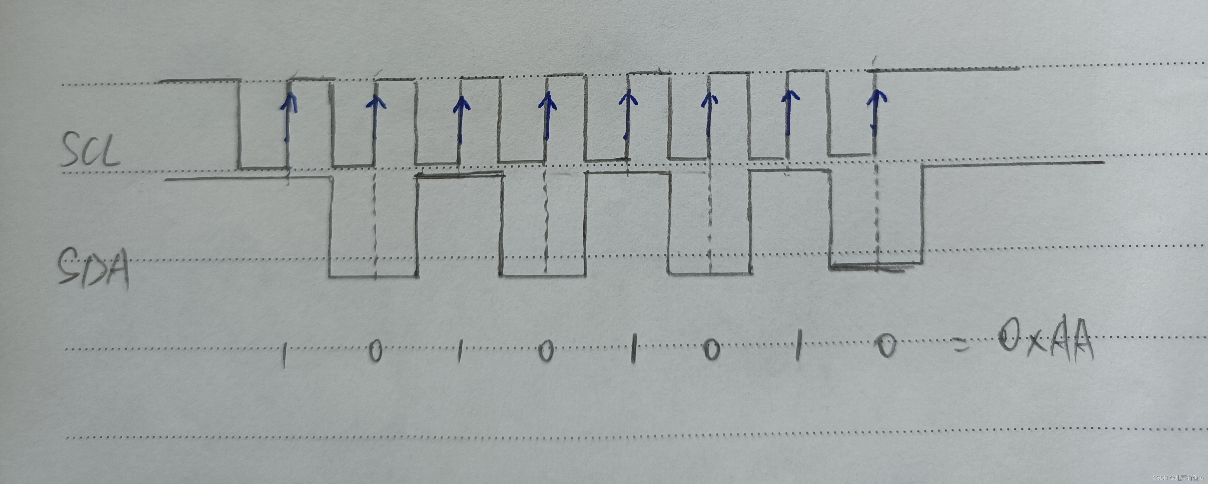 起始信号:当SCL为高电平时,SDA从高电平变为低电平