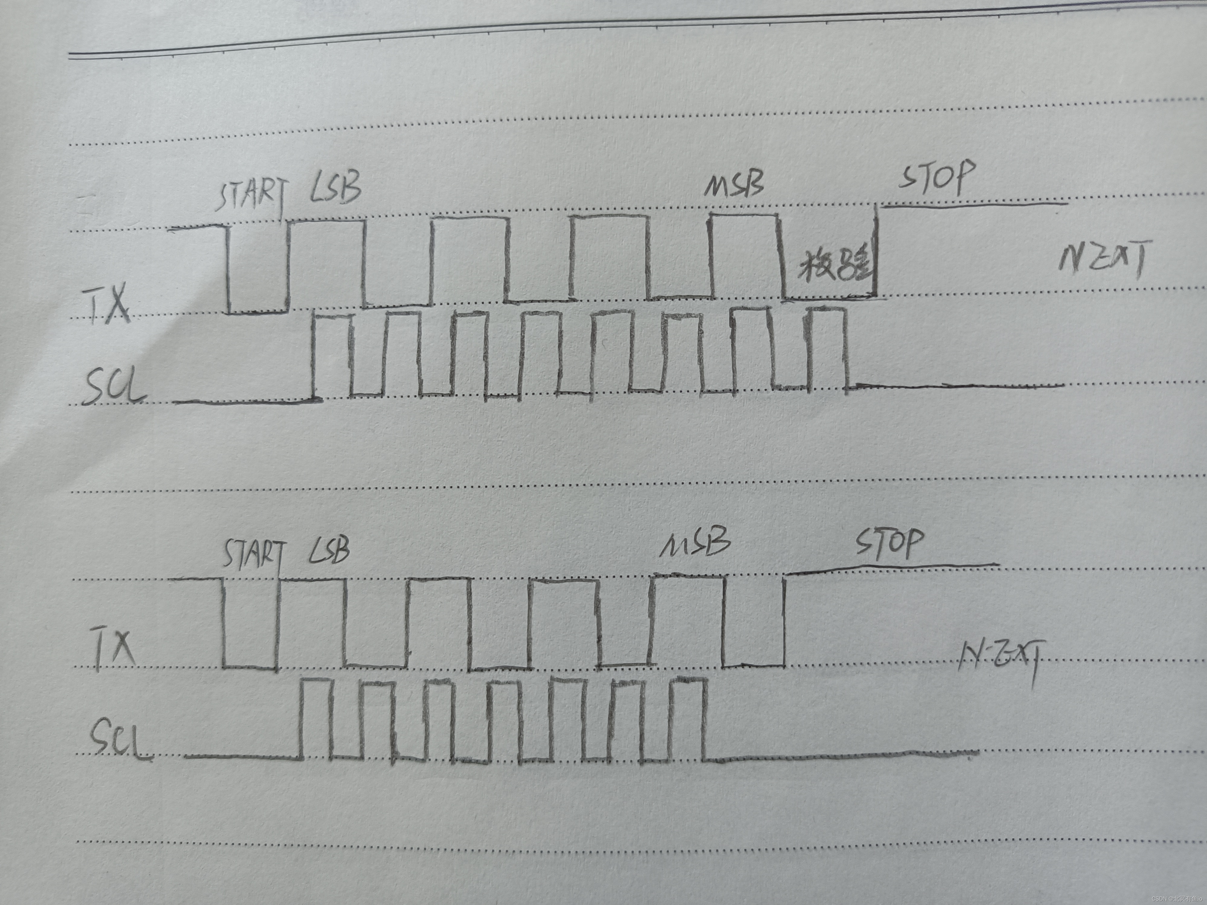 停止位:必须有,可选占0.5、1、1.5、2个位长,保持逻辑1电平