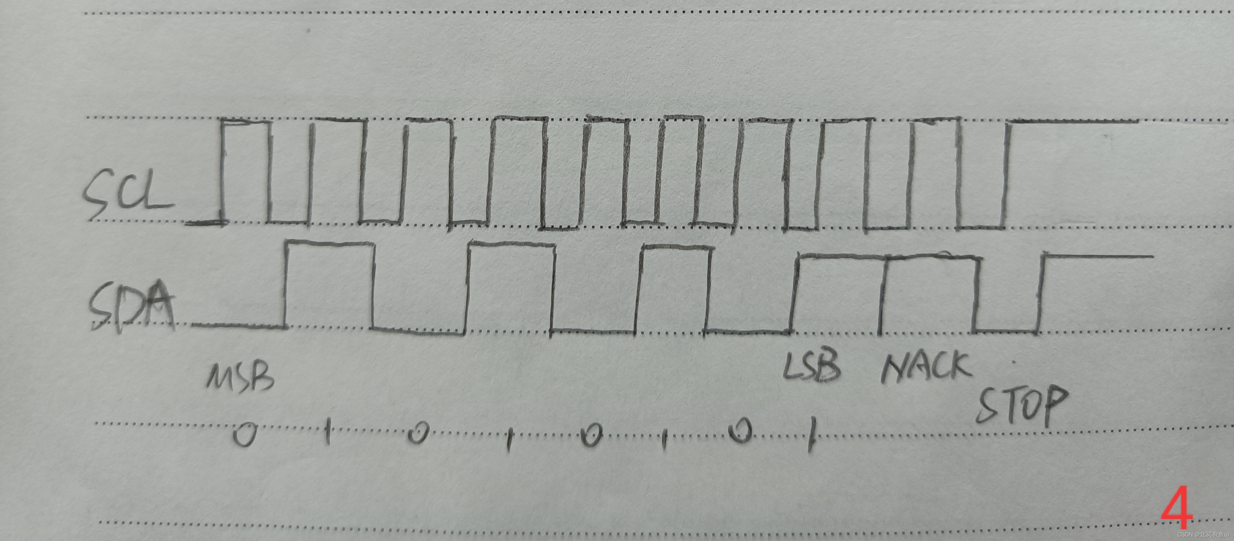 停止信号:当SCL为高电平时,SDA从低电平变为高电平