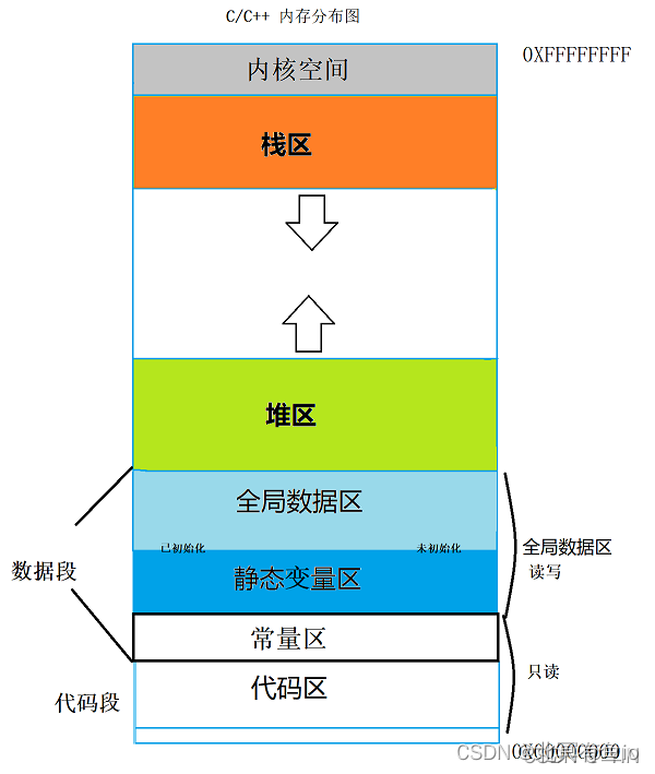 (2)rodata段用常常用于存储常量数据,rodata又被称为只读段,只读数据段在程序运行期间只能读不能写,比如const修饰的常量有可能就存储在rodata段。