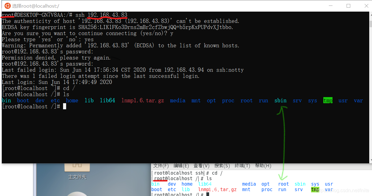默认 ubuntu 和 centos 都安装了 ssh 服务,没有的话可以自行百度命令安装。先查看 centos 下 sshd 服务是否开启,未开启的话就开启。#查看 ssh 默认运行端口是否有 sshd 服务进程 netstat -anp|grep 22 #也可以直接查看 sshd 服务运行状态 ps -ef|grep sshd #开启或重启 sshd 服务 systemctl start(restart) sshd 或 service sshd start(restart)linux 系统 bash 查看 ip 命令:ifconfig 获取机器 ip 后,就可以直接在客户机,直接 bash 敲命令:ssh root@192.168.43.83 再回车,此时会提示输入目标服务器密码,正确输入即可正常登录了。如下图: