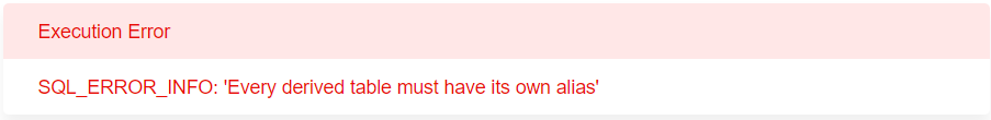 报错语句SQL_ERROR_INFO: 'Every derived table must have its own alias',翻译过来就是每个派生的表必须由它自己的别名。