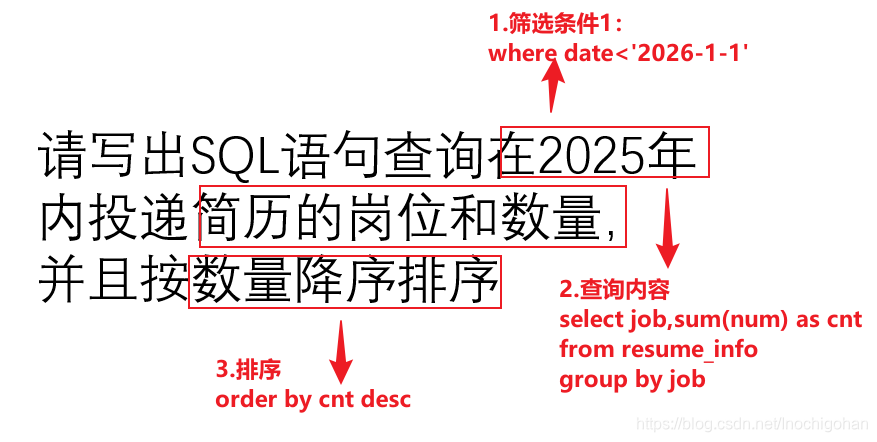 请写出SQL语句查询在2025年内投递简历的岗位和数量,并且按数量降序排序,以上例子查询结果如下: