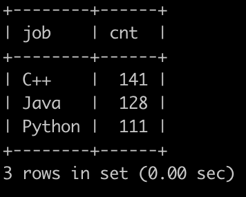 select job,sum(num) as cnt