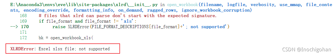 在上边的报错解决后,再次运行代码,报出新的错误XLRDError: Excel xlsx file; not supported