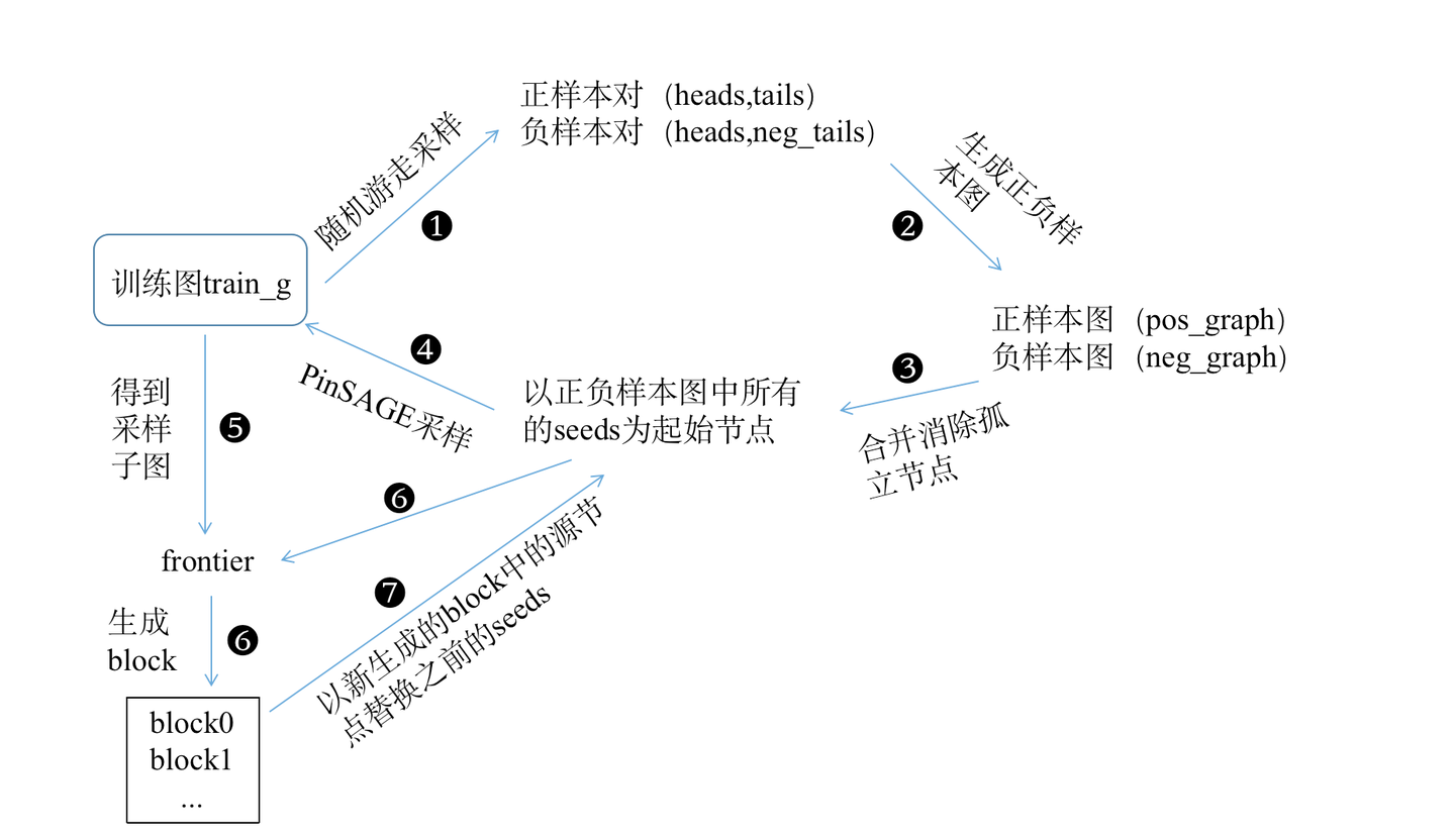 具体的PinSAGE采样过程是在NeighborSampler中的sample_blocks方法和sample_from_item_pairs方法中实现的。