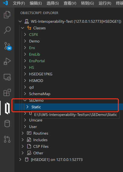 接下来可以在客户端模式连接导出ObjectScript代码到本地。从而进行源代码的版本控制管理。