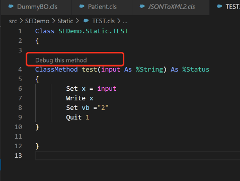- 对于Class Method,可以直接在类中点击“Debug this Method”