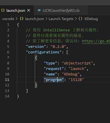 - 对于需要附加到的进程,在lauch.json中添加”program” 属性,并填入进程号,保存。