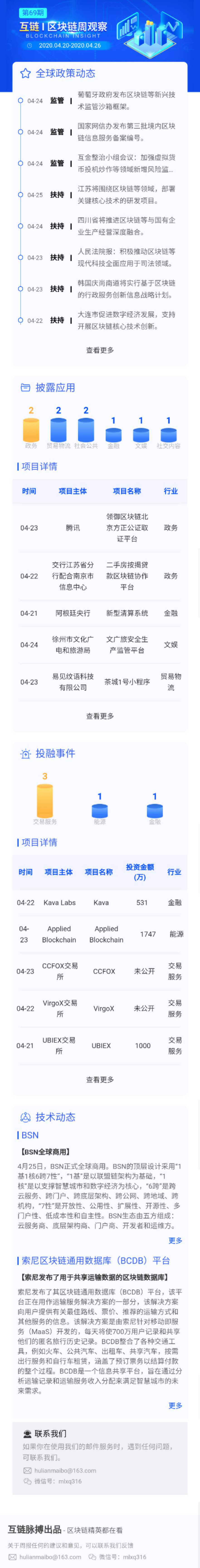 互链脉搏 | 区块链周观察(4.20-4.26)