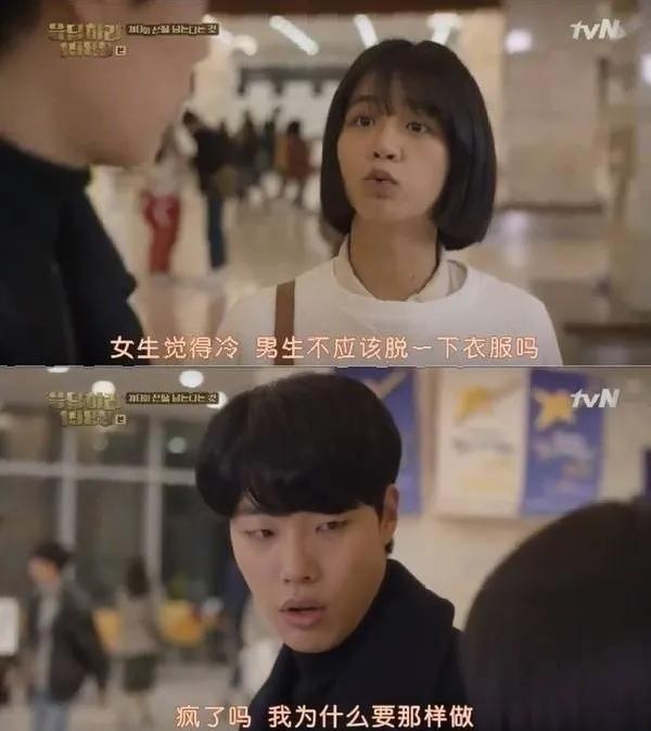 冬天到了,德善说,“女生觉得冷,男生不应该脱一下衣服吗?”