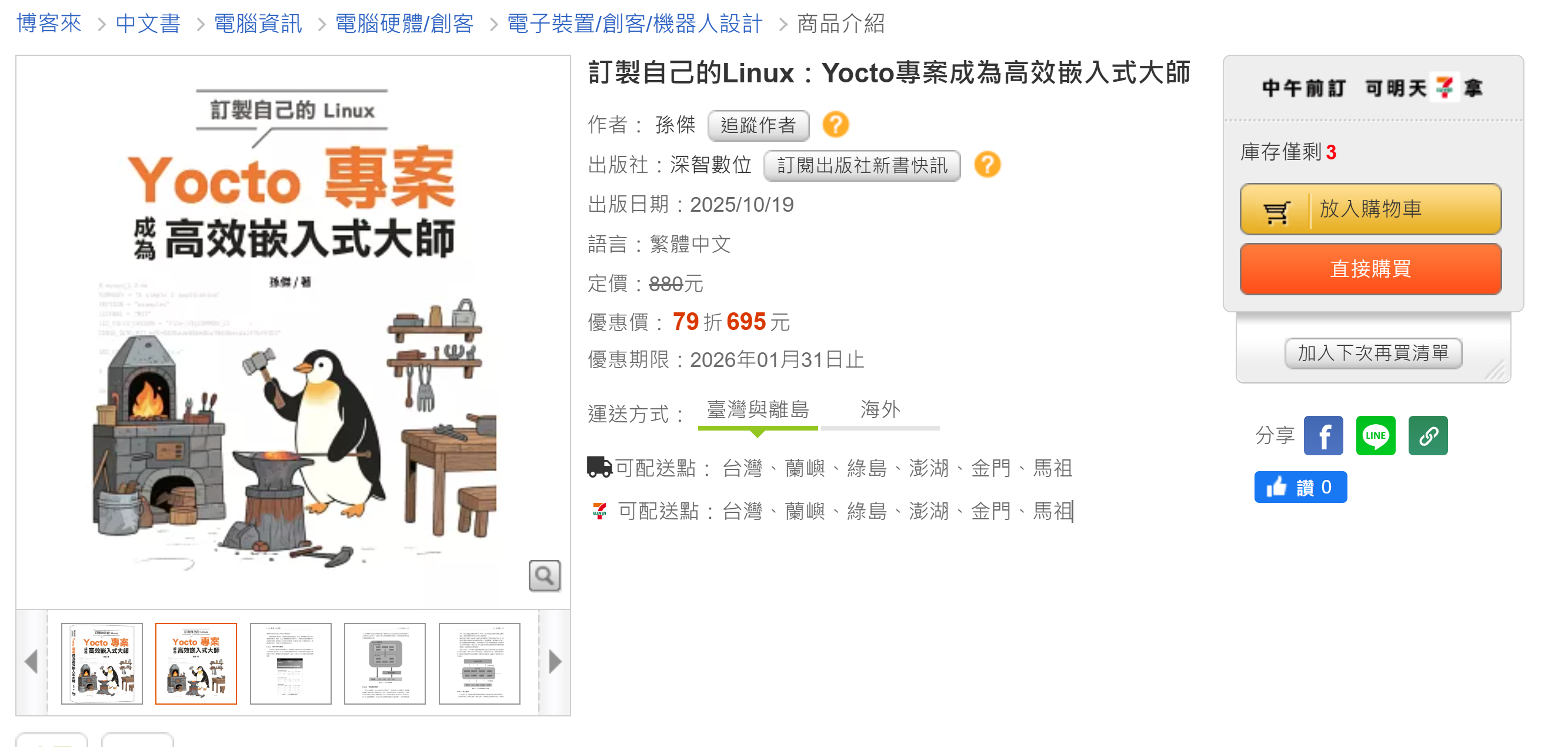 技术会持续演进,工具也会不断变化,但被认真写下来的经验,才能真正留下来。用两本 Yocto 书籍,用文字,为海峡两岸嵌入式行业贡献一份力量。