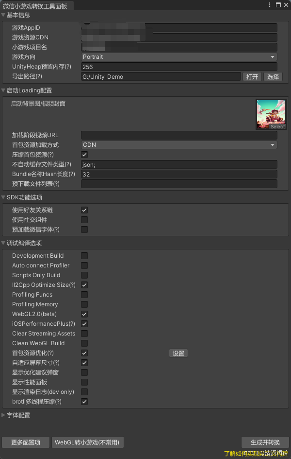 如果使用Unity团结引擎,那么可以直接进行开发(团结引擎版本,打包出去后小游戏右下角有水印,如果能接受就无所谓了),如果不使用团结引擎的话,Unity的版本选择2021版,22版本URP项目导出的小游戏会报Shader错误