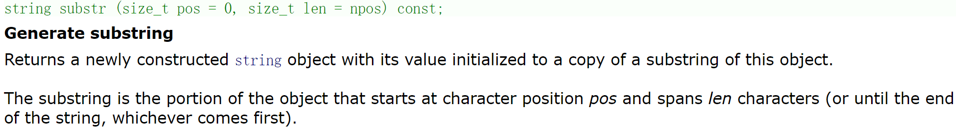 substr函数的作用就是通过指定字符串位置进行拷贝给另一个新构造的string类的字符数组。原字符串不变,这里参数都有默认参数,不传是默认从起始位置到末尾。