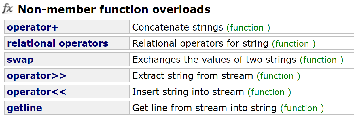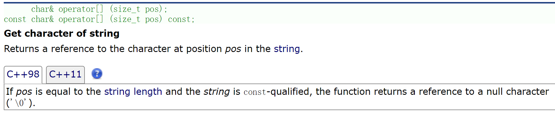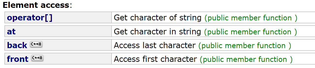 operator[] | 获取字符串的字符(通过下标运算符,直接按索引访问字符 ) |