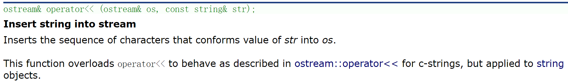 这里主要重点介绍operator>>,operator<<和getline 对于这里的swap前面有做介绍,operator+前面有介绍operator+=原理其实很类似,功能也差别不大,relational operators和前面讲到的compare很类似,功能也是差别不大,都不做过多介绍了。