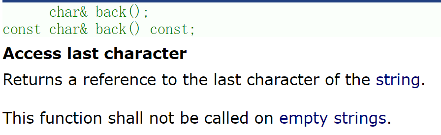 back | 访问最后一个字符(C++11 及以上标准支持 ) |