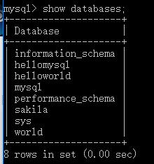 输入密码,成功进入后输入 show databases可以看到当前的数据库