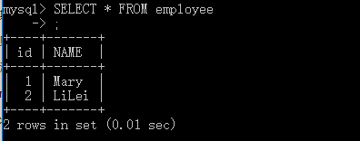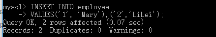 Employee表创建后,通过INSERT语句添加具体的条目(行):