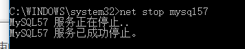 - 停止MySql服务:通过命令行net stop MySQL57停止MySql服务(mysql的服务名:查找方法:右键我的电脑–>管理–>服务,然后找到mysql的服务名即可)