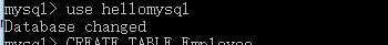 数据库是通过一张张的表来存储数据的,如何创建表呢?首先,通过use HelloMySql命令进入我们创建的数据库,如下:
