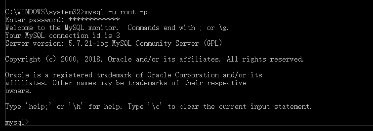 随后,便可以通过cmd输入mysql -h 127.0.0.1 -u root -p 或者mysql -u root -p登陆