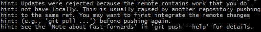 hint: See the 'Note about fast-forwards' in 'git push --help' for details.