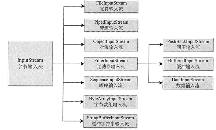 Java 流相关的类都封装在 java.io 包中,而且每个数据流都是一个对象。所有输入流类都是 InputStream 抽象类(字节输入流)和 Reader 抽象类(字符输入流)的子类。其中 InputStream 类是字节输入流的抽象类,是所有字节输入流的父类,其层次结构如图 3 所示。
