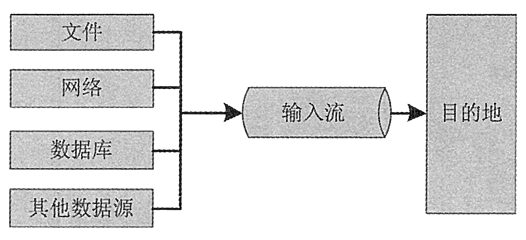 数据流的处理只能按照数据序列的顺序来进行,即前一个数据处理完之后才能处理后一个数据。数据流以输入流的形式被程序获取,再以输出流的形式将数据输出到其它设备。图 1 为输入流模式,图 2 为输出流模式。